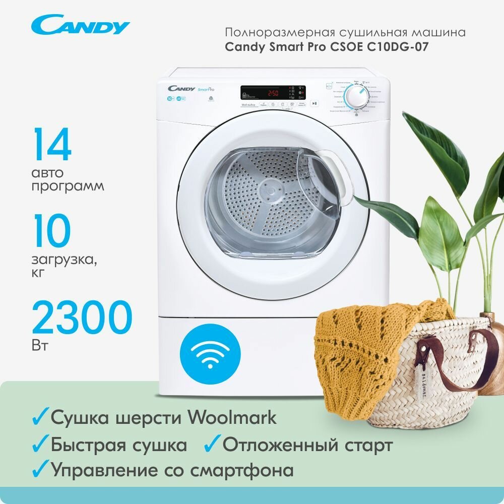 Сушильная машина Candy Smart Pro CSOE C10DG-07, конденсационная, на 10 кг