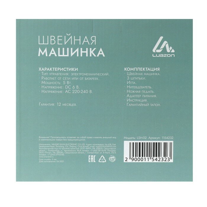 Швейная машина LuazON LSH-02, 5 Вт, компактная, 4xАА или 220 В, белая./В упаковке шт: 1 интересное: