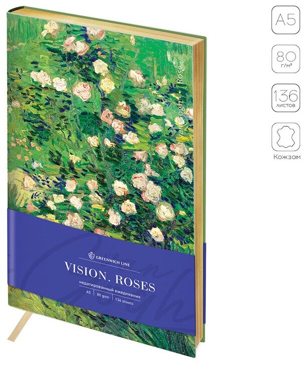 Ежедневник недатир. A5, 136л, кожзам, Greenwich Line "Vision.Van Gogh. Roses", тон.блок, золот.срез ENA5-30156 И 4680211301569 интересное: