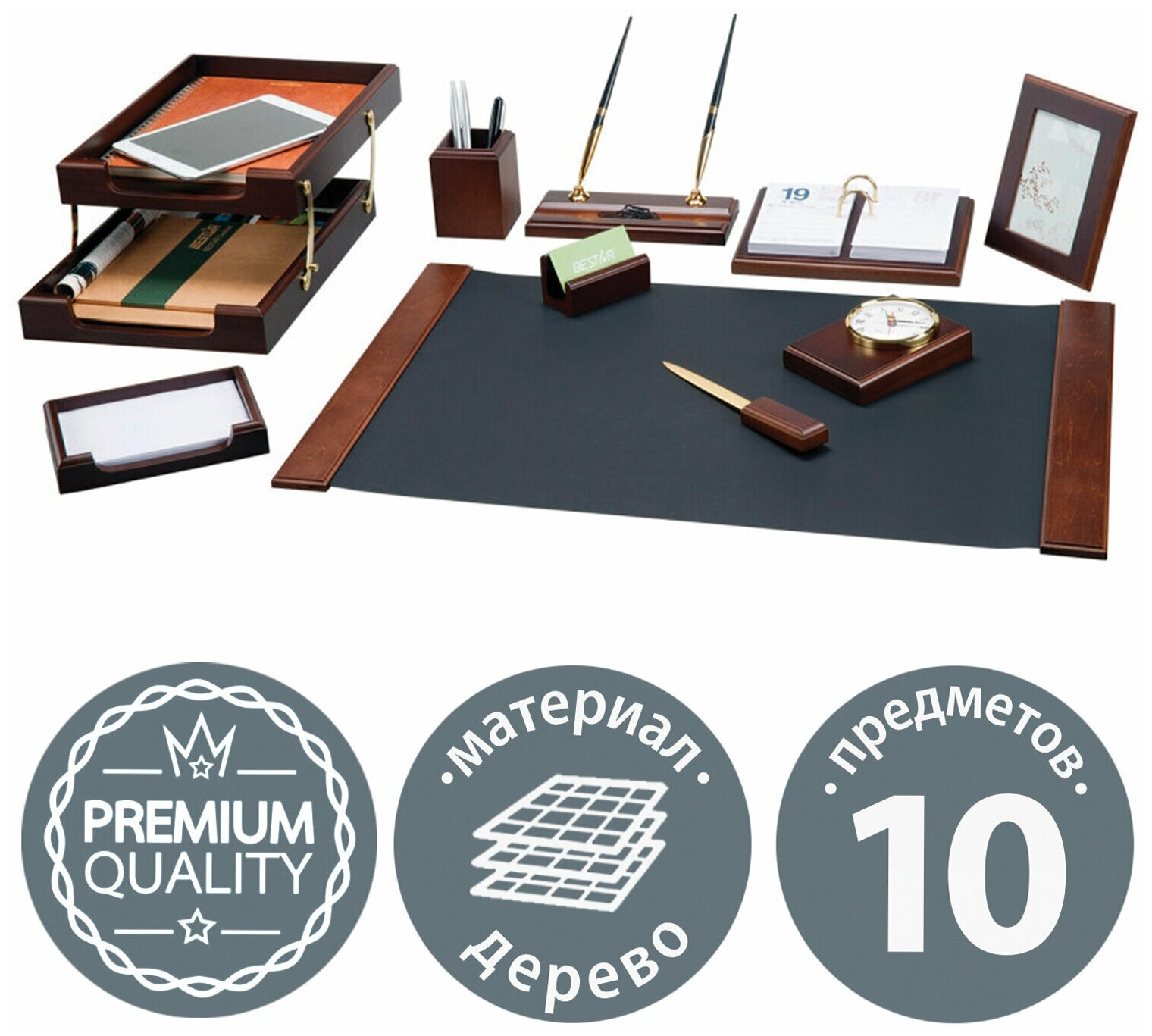 Набор настольный BESTAR Artemis 10 предметов, двойной лоток, орех