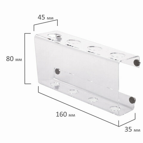 Держатель магнитный для 4 маркеров для доски (85х160 мм), комплект 3 шт., прозрачный акрил, BRAUBERG, 235530 интересное: