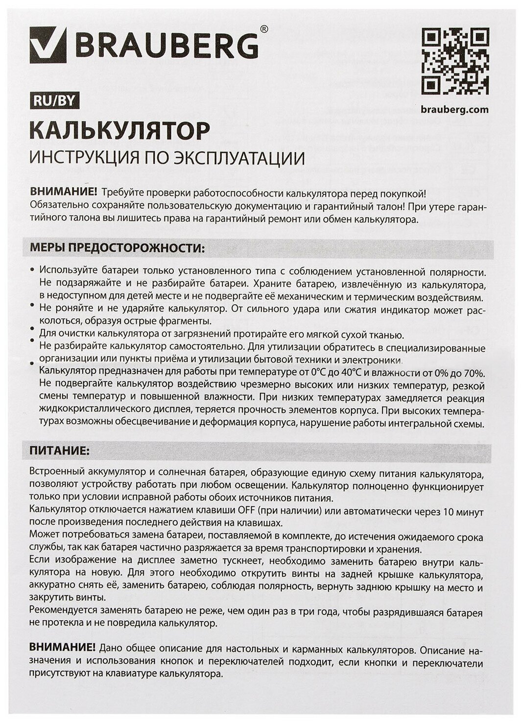 СохранитьКалькулятор карманный BRAUBERG PK-608-BU (107×64 мм), 8 разрядов, двойное питание, синий, 250519 интересное: