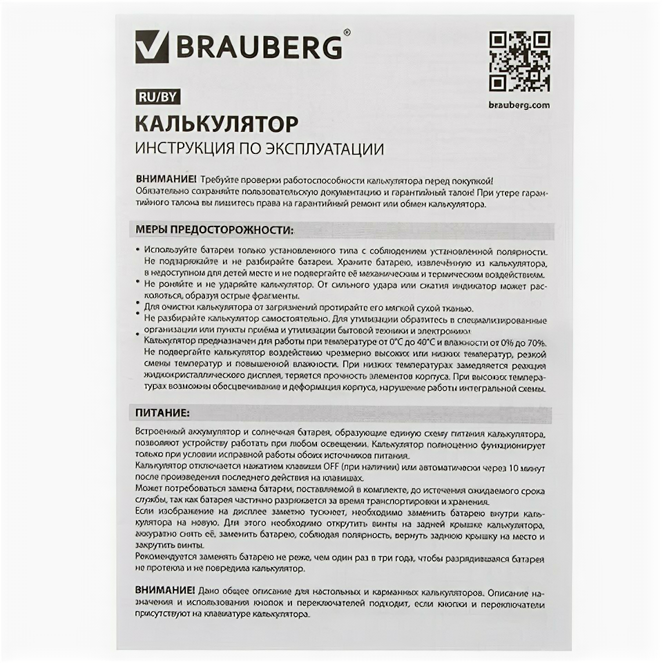 Калькулятор BRAUBERG 250522