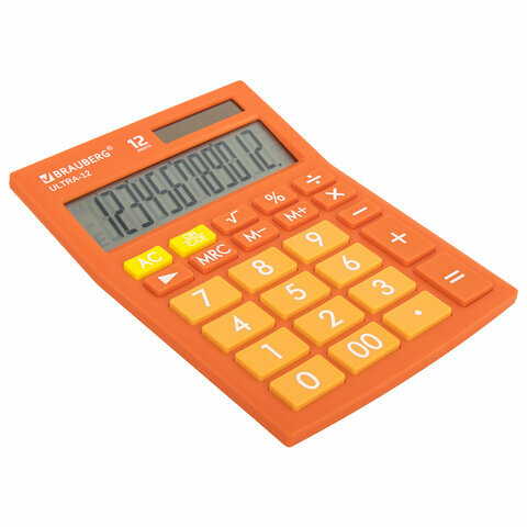 Калькулятор BRAUBERG Ultra, 12-Rg, 12-разрядный, оранжевый