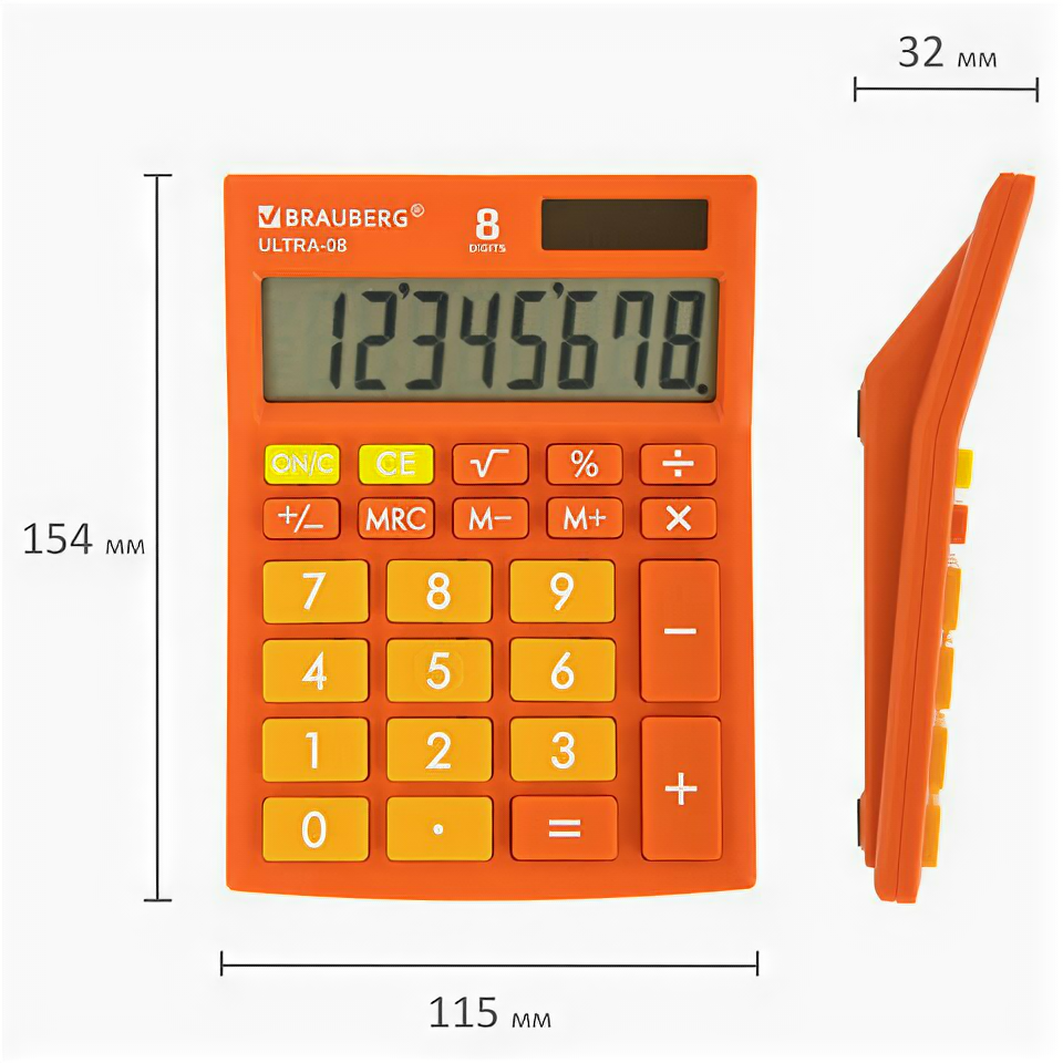 Калькулятор настольный BRAUBERG ULTRA-08-RG, компактный (154x115 мм), 8 разрядов, двойное питание, оранжевый,