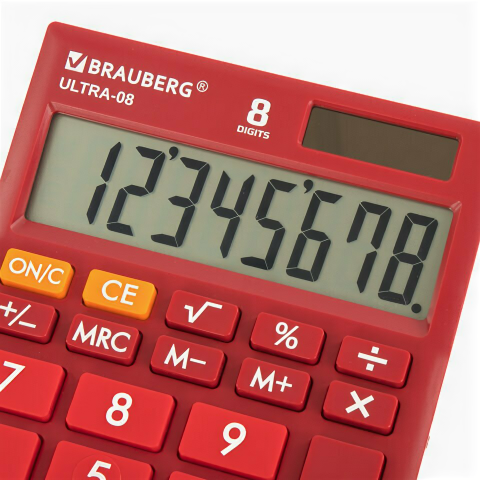 Калькулятор настольный BRAUBERG ULTRA-08-WR, компактный (154x115мм), 8 разрядов, бордовый, 250510