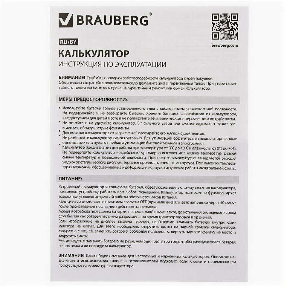 Калькулятор настольный BRAUBERG ULTRA-08-BU, компактный (154