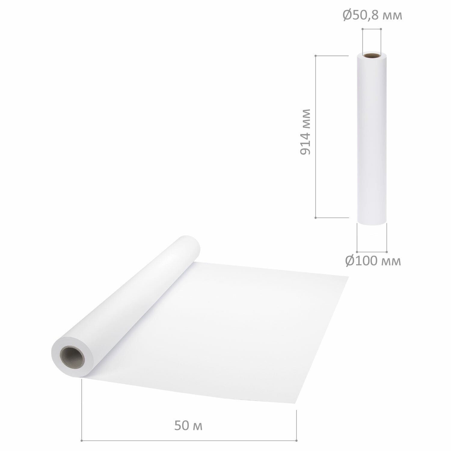 Рулон для плоттера, 914 мм х 50 м х втулка 50,8 мм, 80 г/м2, белизна CIE 162%, диаметр 100 мм, BRAUBERG, 110458