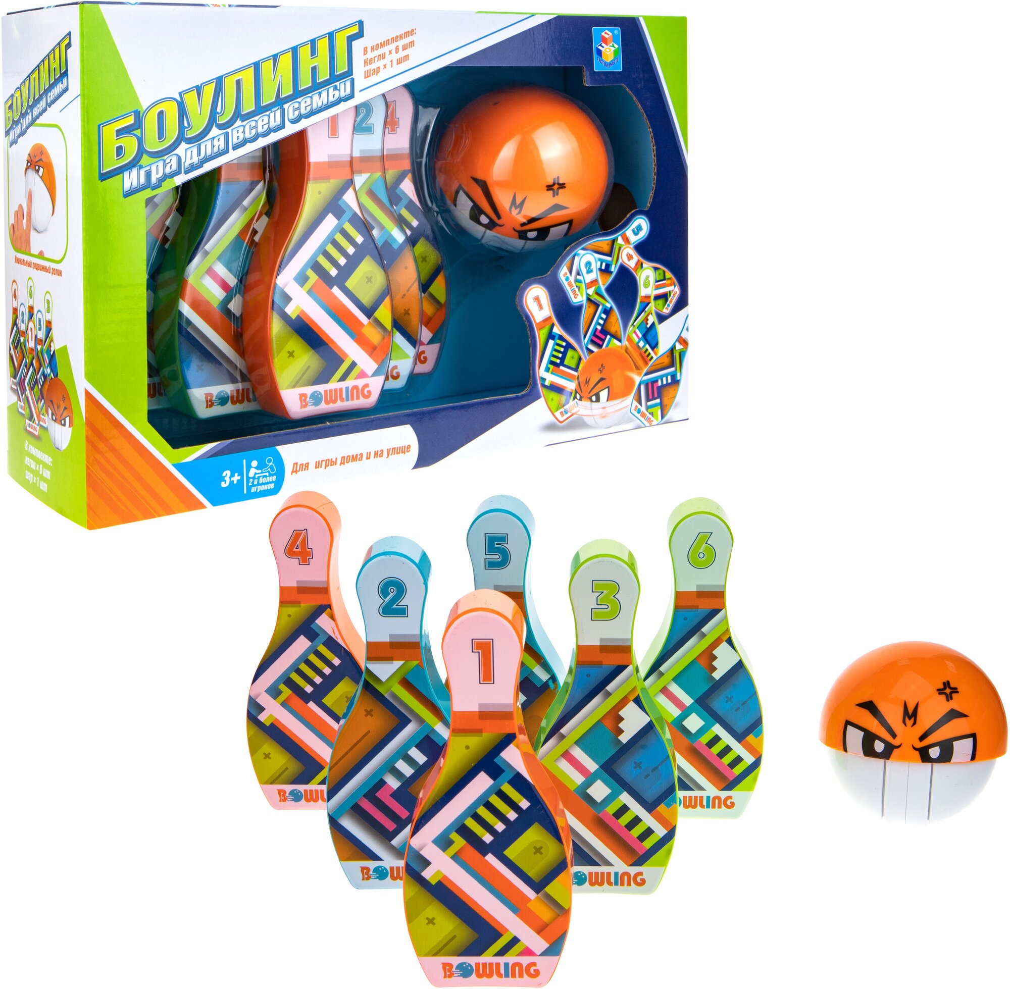 Игровой набор 1TOY "Боулинг" 6 кеглей и шар