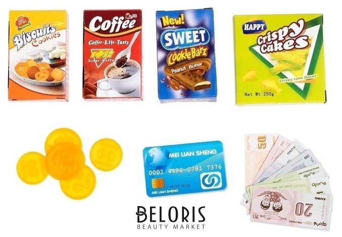 | В комплекте | банковская карта, весы, деньги, кассовый аппарат, продукты, сканер |