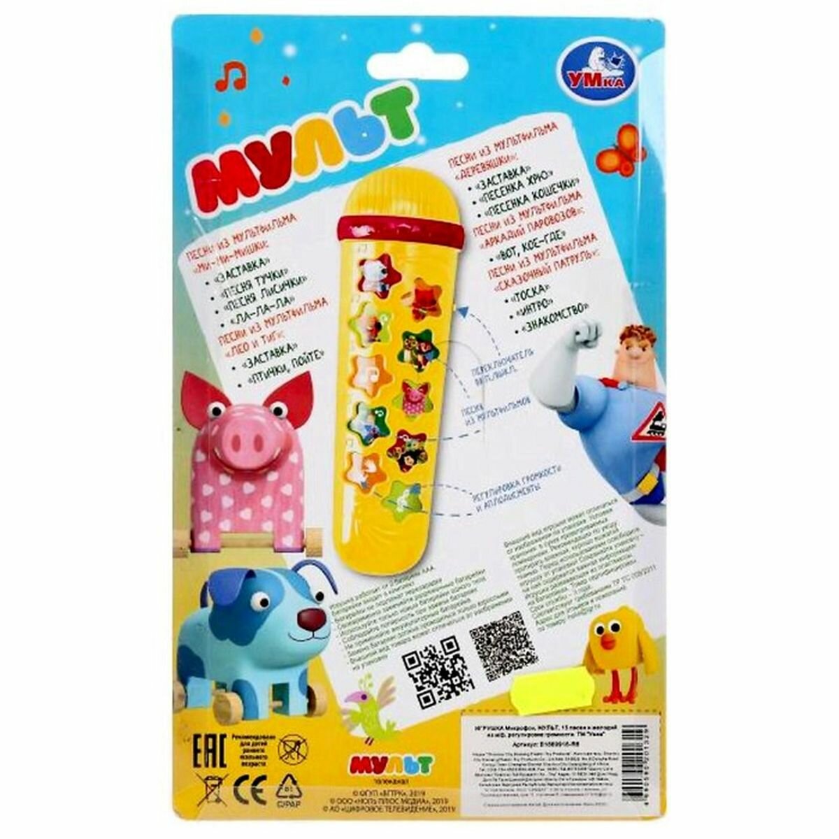 288549 Микрофон мульт 15 песен и мелодий из м/ф, регулировка громкости на карт. Умка.