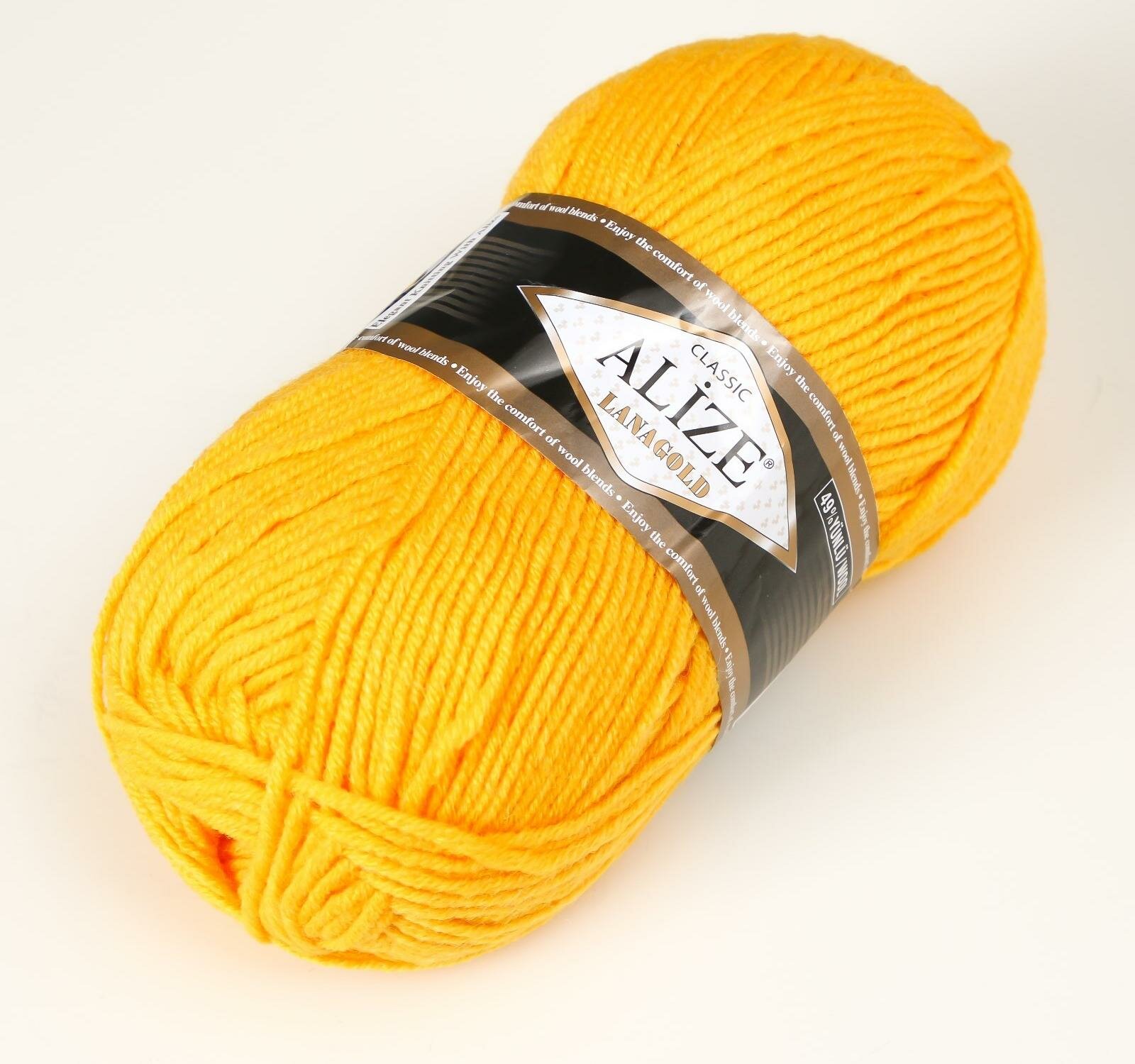 Купить Пряжа Alize Lanagold (Ализе Ланаголд) - 1 моток 216 желтый 49% шерсть, 51% акрил 240м/100г
