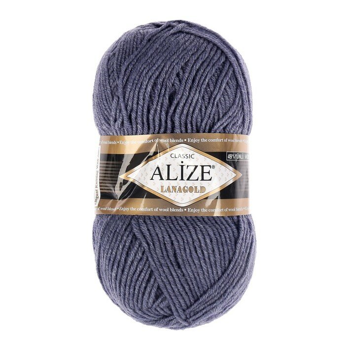 Пряжа Alize Lanagold (Ланаголд) - 1 моток Цвет: 215 черника 49% шерсть, 51% акрил 100г 240м