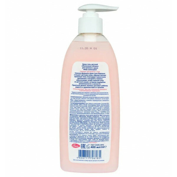 Аванта Крем-гель Мое солнышко детский Малиновое облако для купания и душа 400 мл интересное: