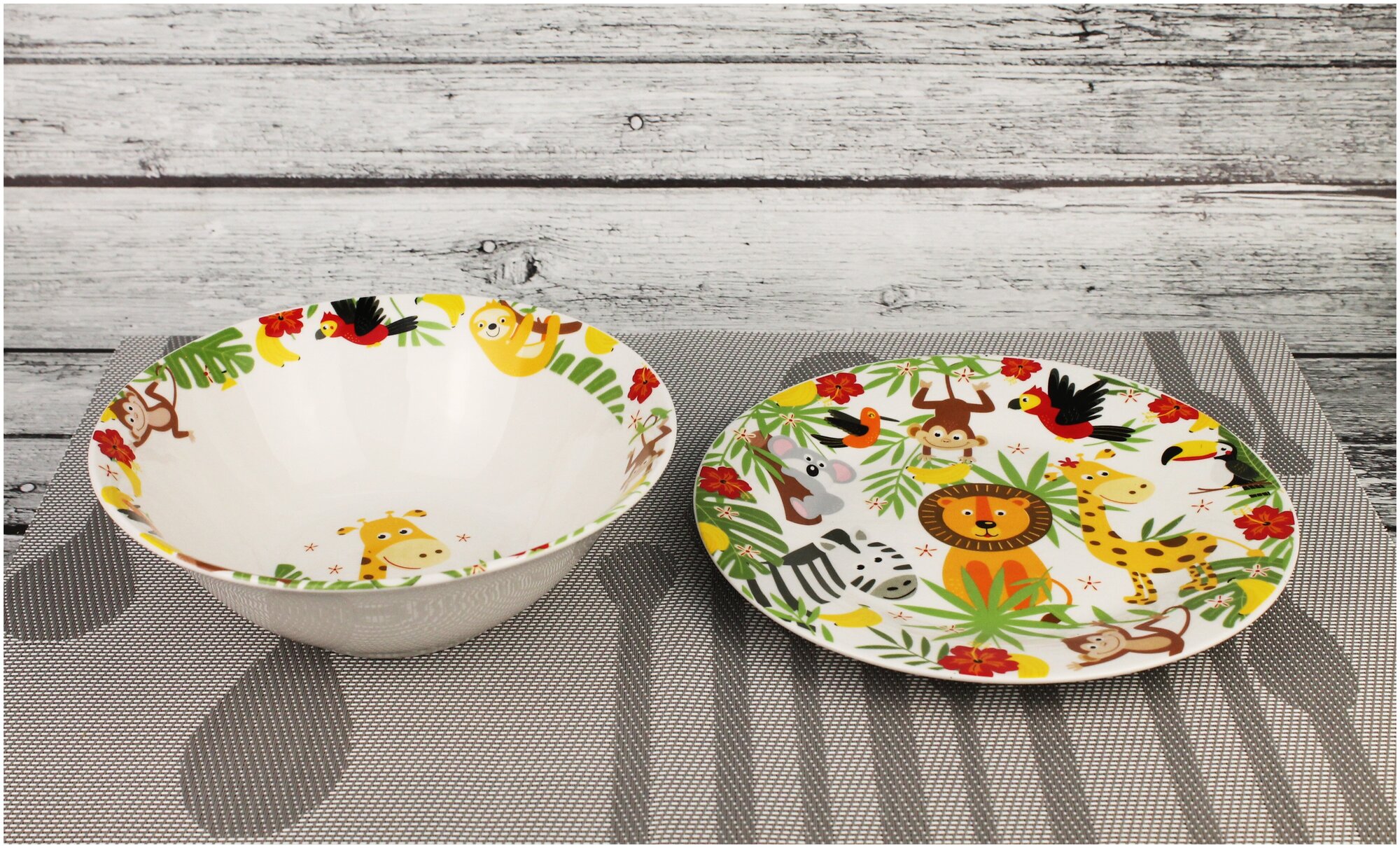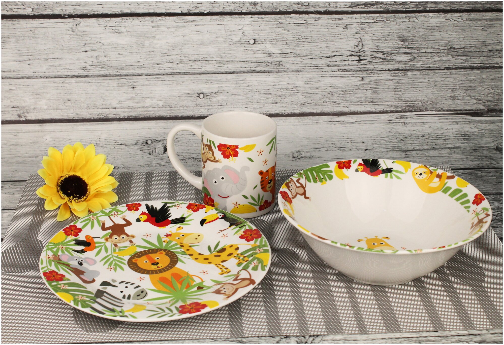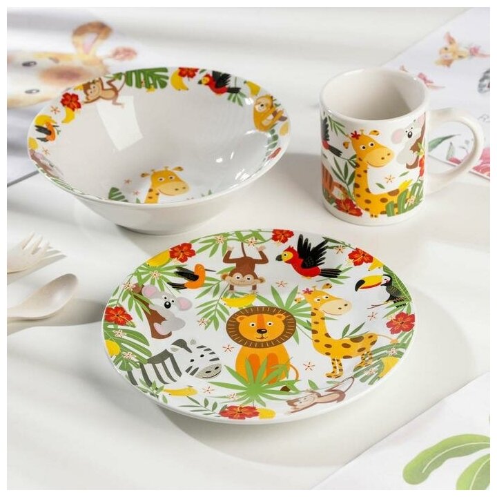 Набор "Джунгли" 3 предмета: кружка 240 мл, миска 18 см, тарелка 19 см в подарочной упаковке