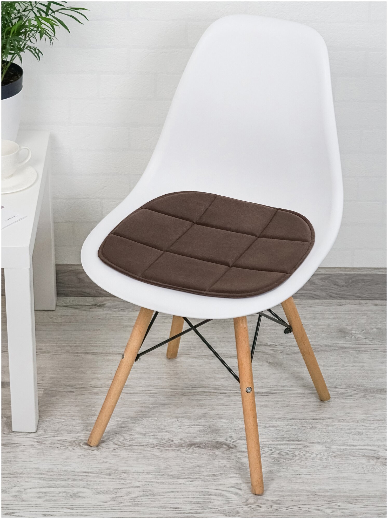 Подушка на стул из микровелюра, 39x40 см, кофейный