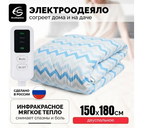 EcoSapiens Двузонное электроодеяло EcoSapiens Zaggy 150х180 см, EcoSapiens
