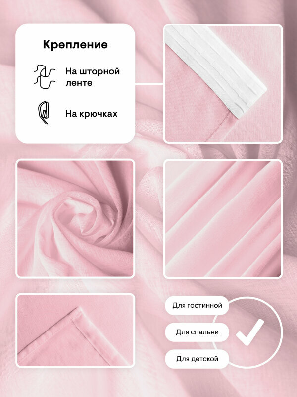 Тюль-вуаль PEORA под лён DOLLY-C7 Розовая 300*260