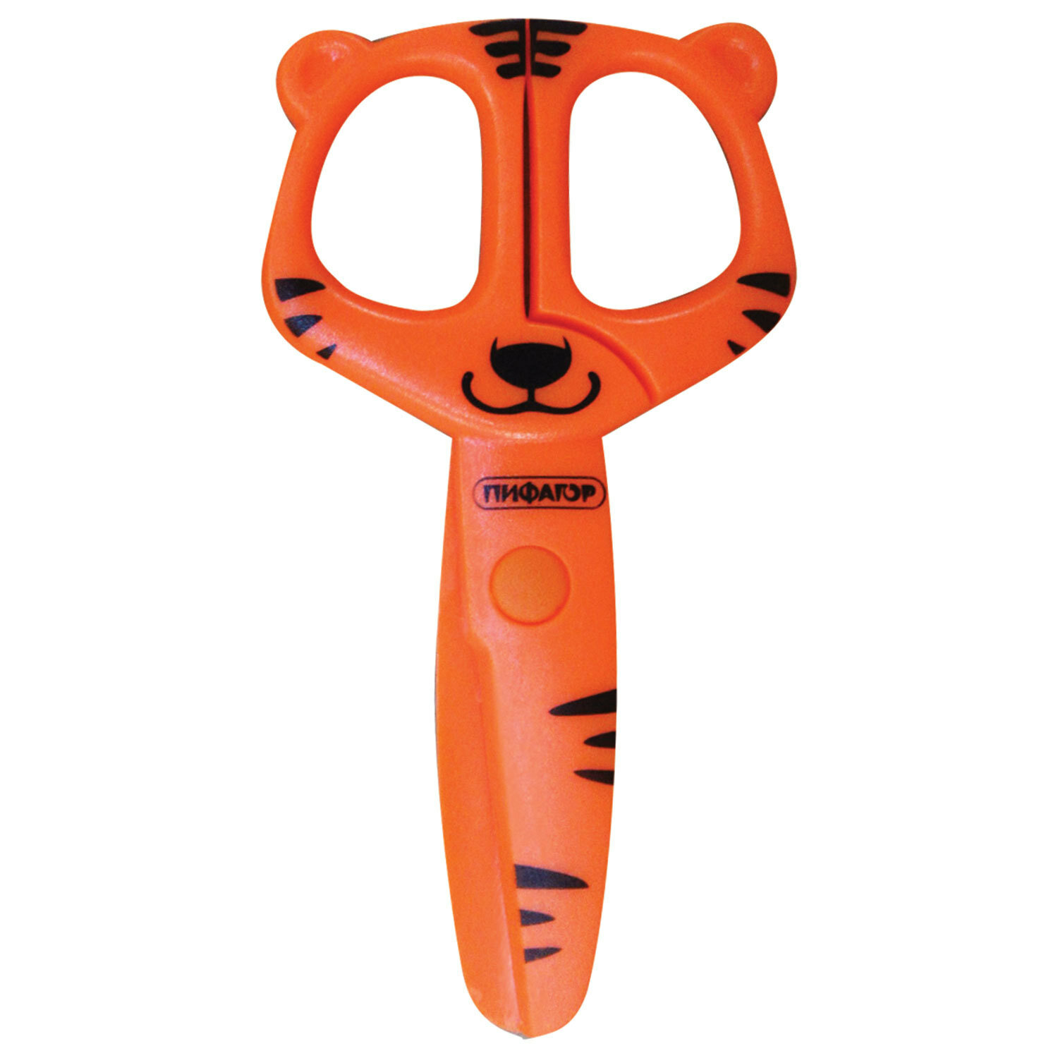 Ножницы детские Пифагор "Тигренок" 120 мм, с безопасными пластиковыми лезвиями, оранжевые (236858)