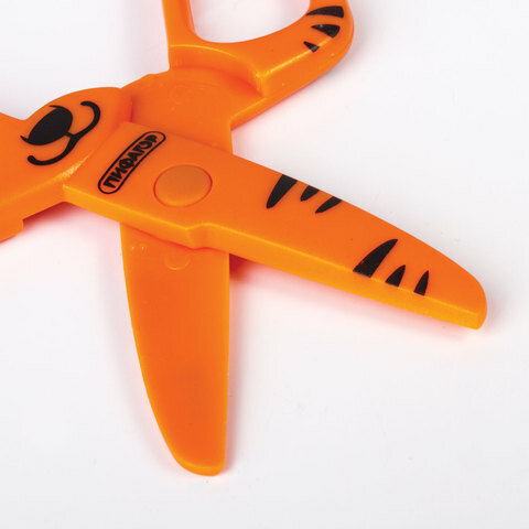 Ножницы детские Пифагор "Тигренок" 120 мм, с безопасными пластиковыми лезвиями, оранжевые (236858)