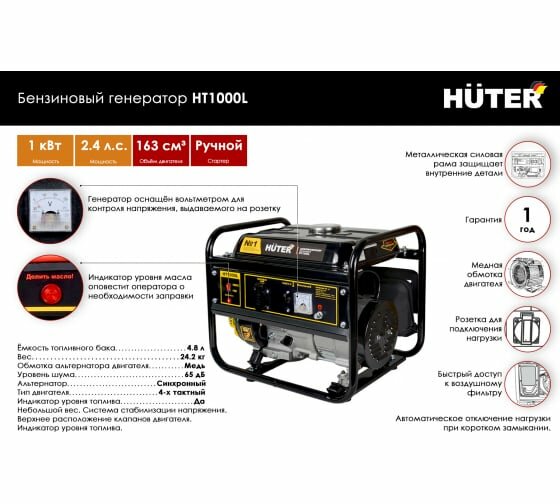 СохранитьПортативный бензогенератор HUTER HT1000L интересное: