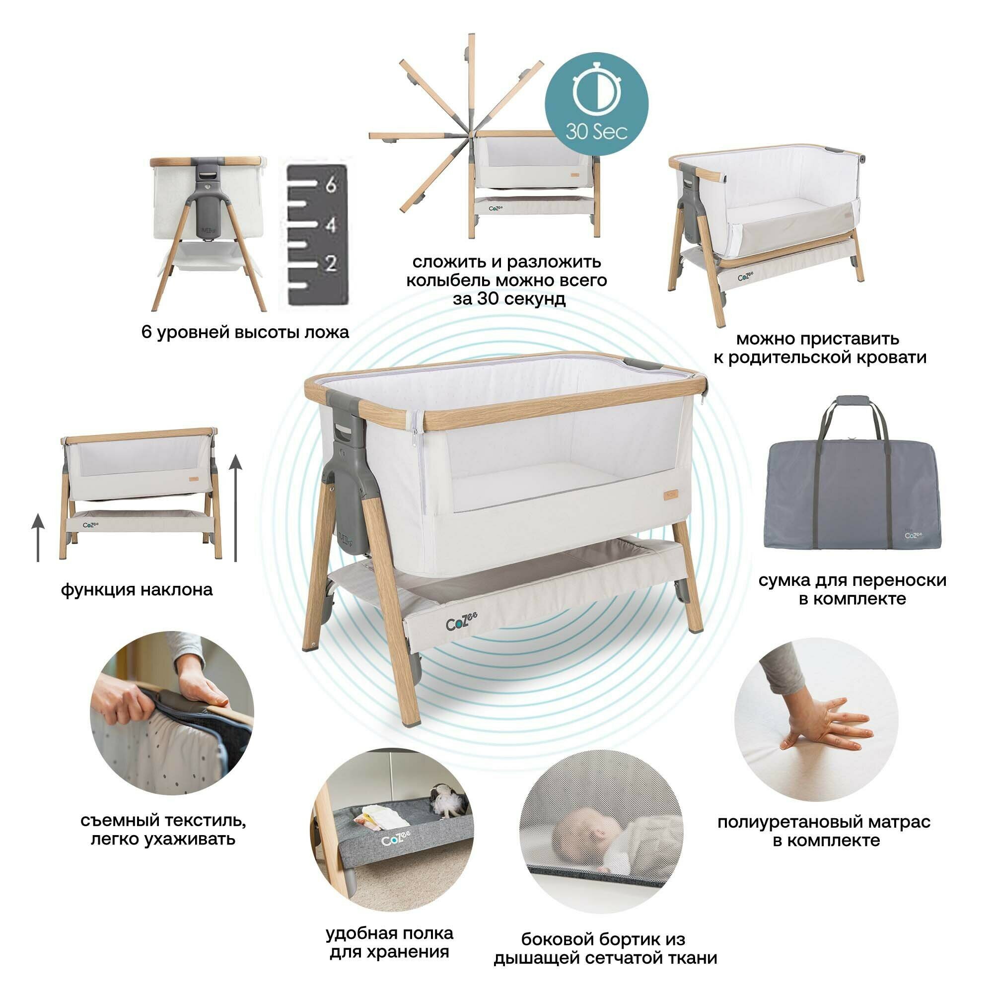 Купить Колыбель Tutti Bambini CoZee с колесами, Oak and Silver V2