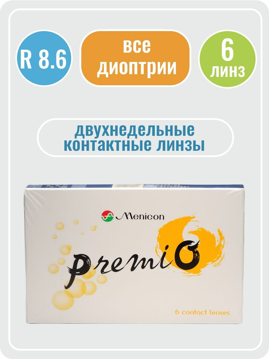 Контактные линзы Premio двухнедельные (6 линз) -8,00 / 8.6