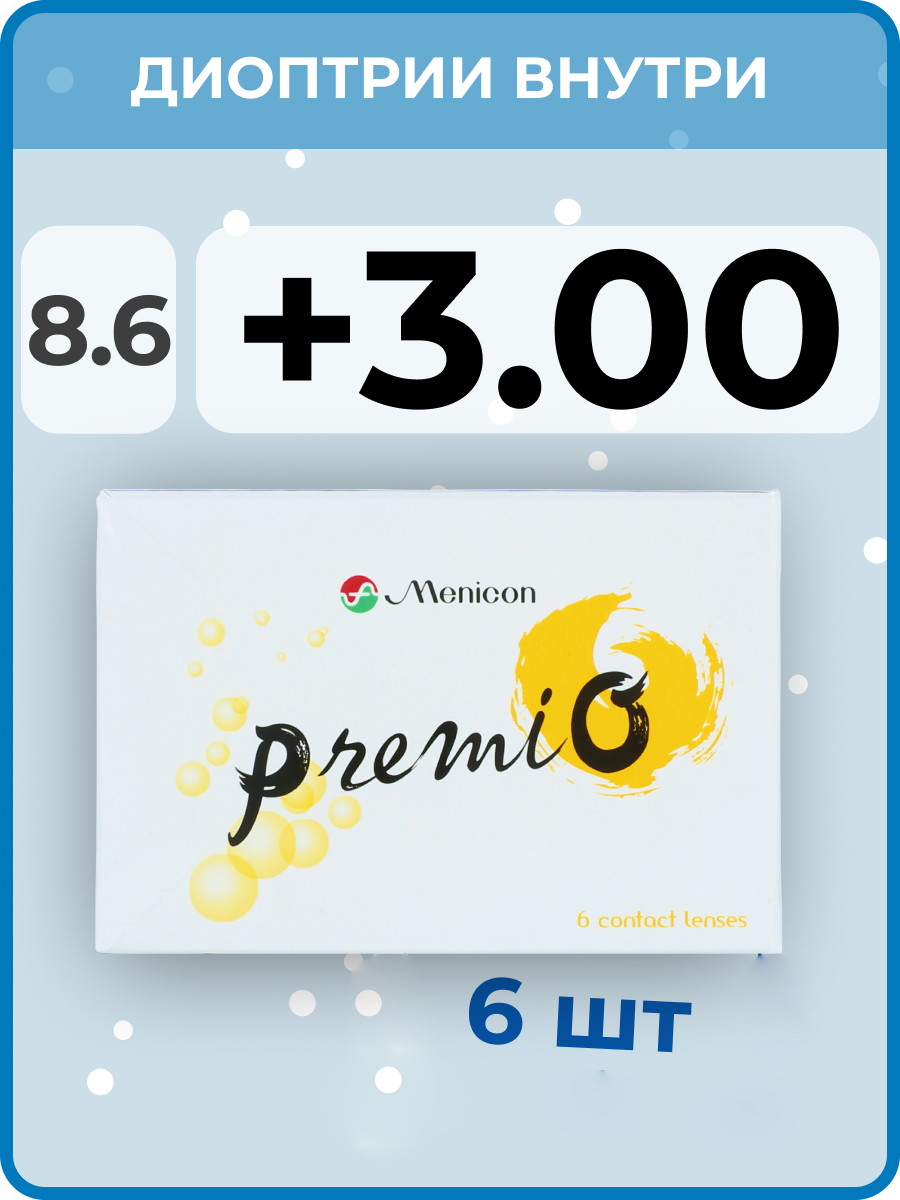 Купить Контактные линзы Menicon Premio 6 линз R. 8.6 SPH +3.00, 2 недели
