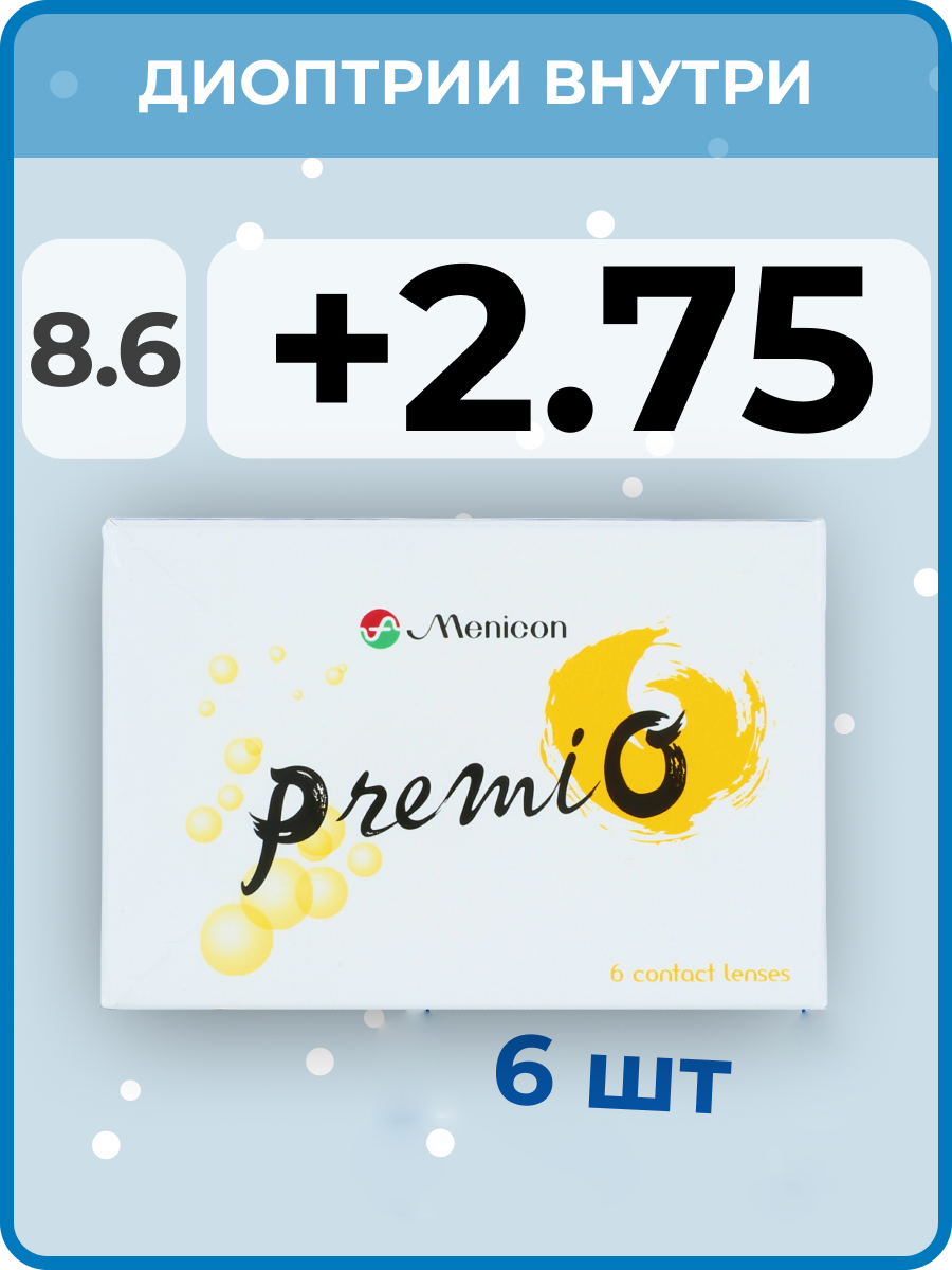 Купить Контактные линзы Menicon Premio 6 линз R. 8.6 SPH +2.75, 2 недели