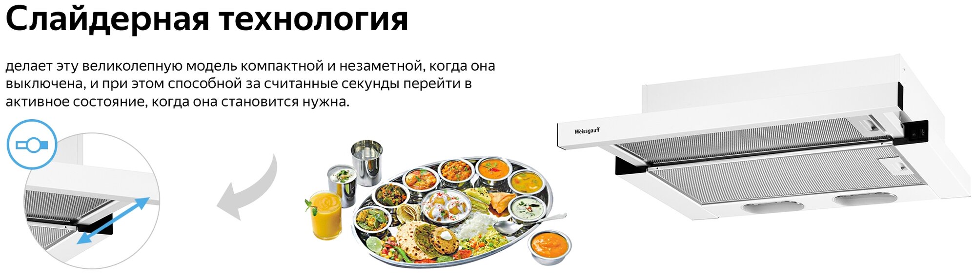 Кухонная встраиваемая вытяжка Weissgauff TEL 600 EW 3 года гарантии, Алюминиевый жировой фильтр, Низкий уровень шума