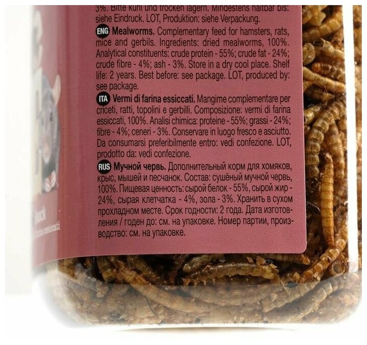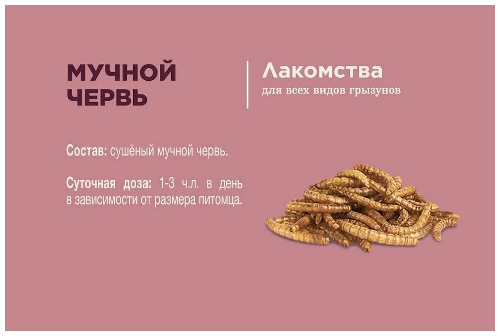 Лакомство "Мучной червь" для всеядных грызунов, 70 г