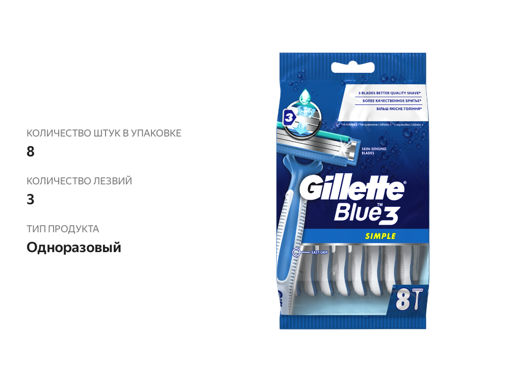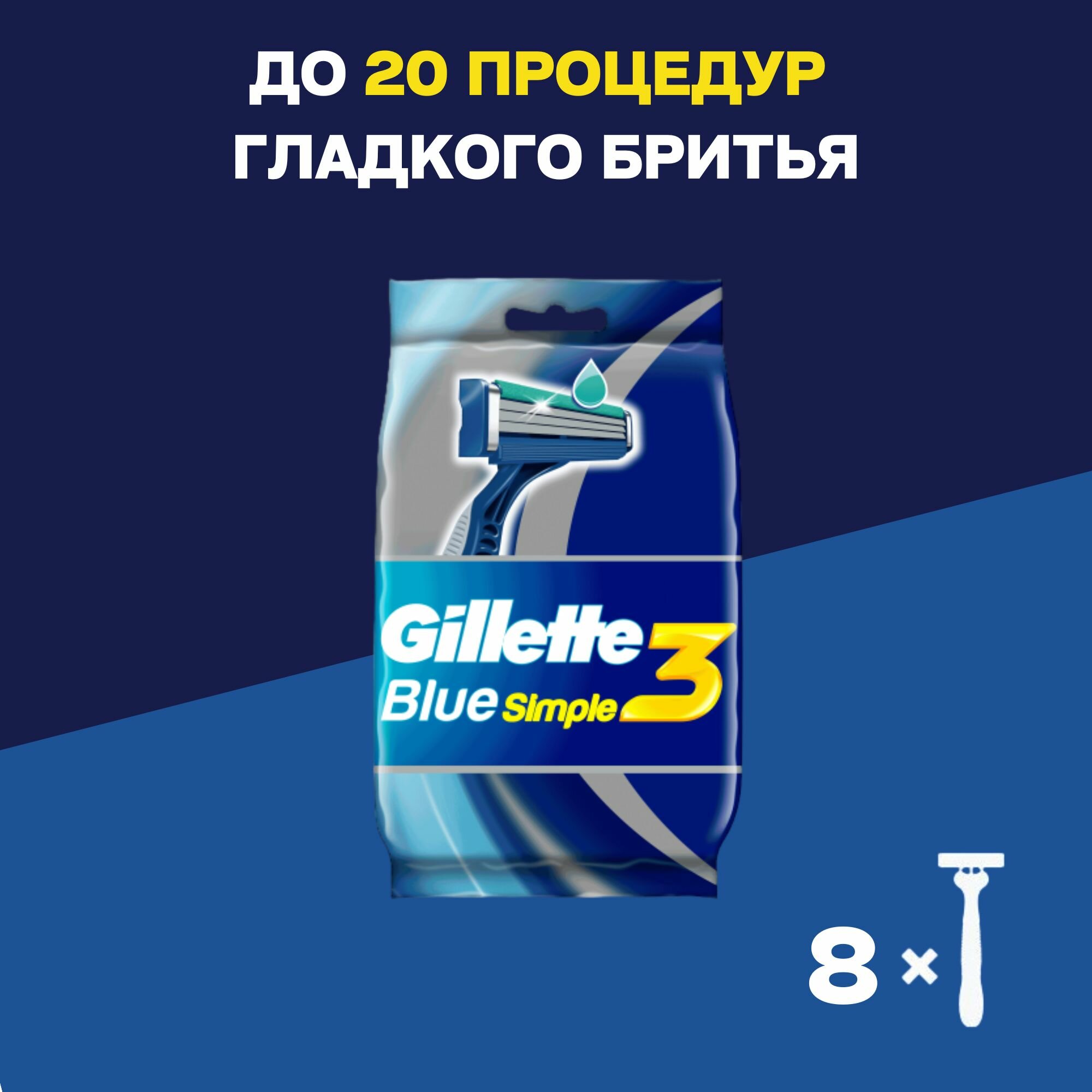 Купить Gillette Одноразовые Мужские Бритвы Blue3 Simple, с 3 лезвиями, 8, фиксированная головка