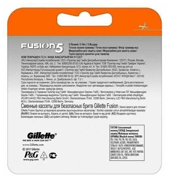GILLETTE Fusion 5 Сменные кассеты для бритья с 5 лезвиями, мужские, 8 шт