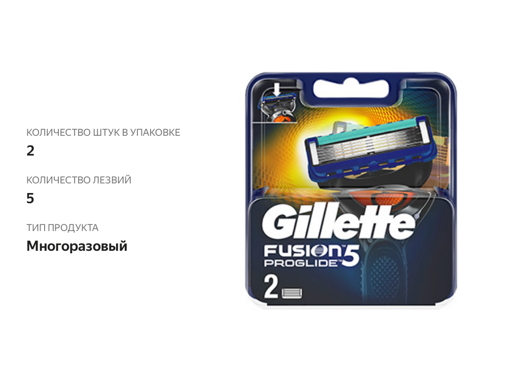 Сменные кассеты для бритвенного станка Gillette Fusion ProGlide, 2шт