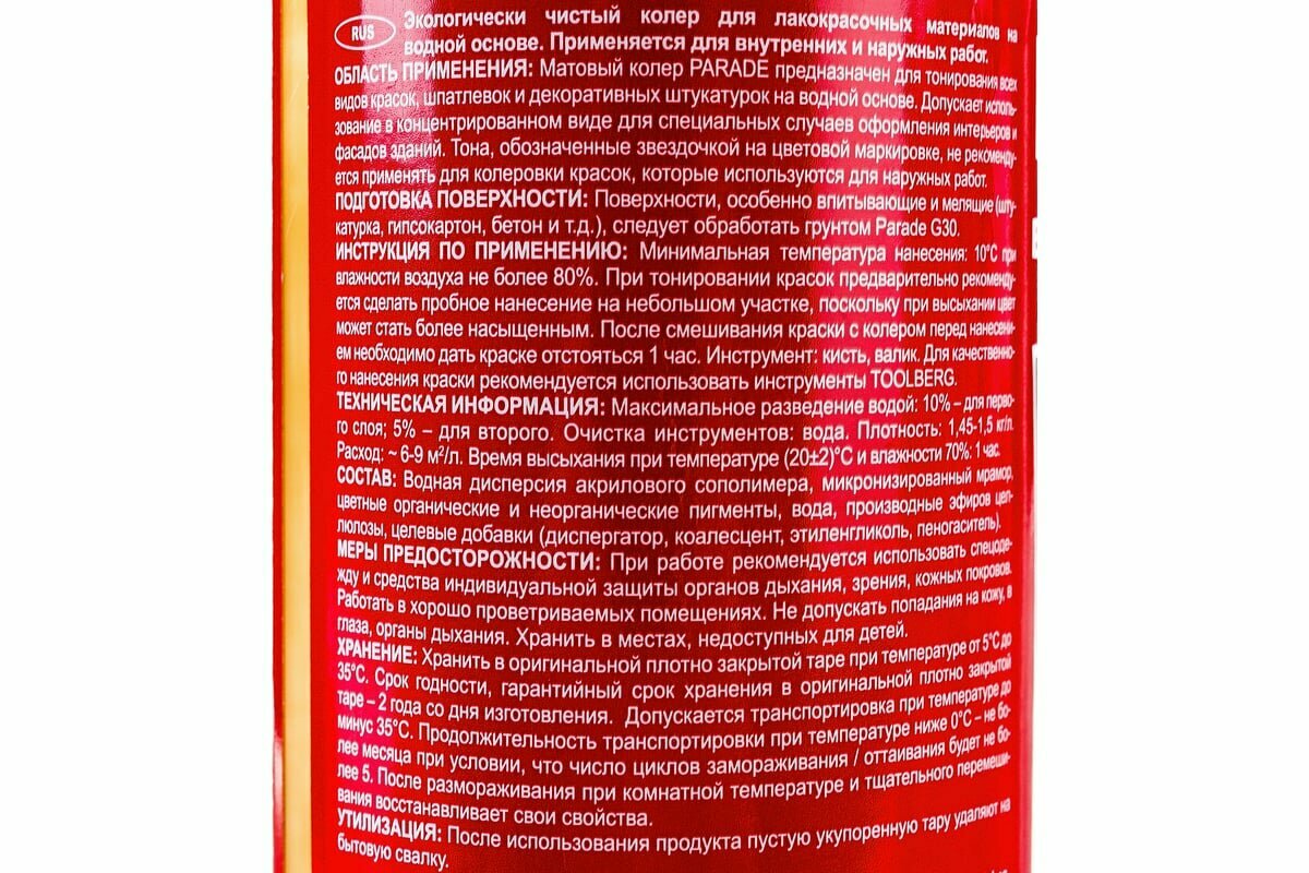 Ниже Вы можете прочитать отзывы на Колер водно-дисперсионный Parade Classic №201 охра 0,75 л, ознакомится с подробными характеристиками, посмотреть интересные обзоры и фотографии на Колер водно-дисперсионный Parade Classic №201 охра 0,75 л.