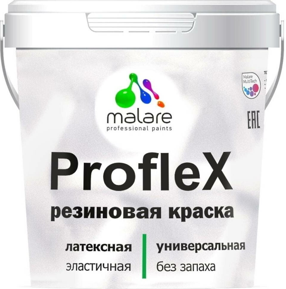Краска резиновая Malare ProfleX для фасадов, интерьера, мебели, кровли, цоколей, универсальная, эластичная моющаяся, быстросохнущая, без запаха, матовая, белый, 1 кг