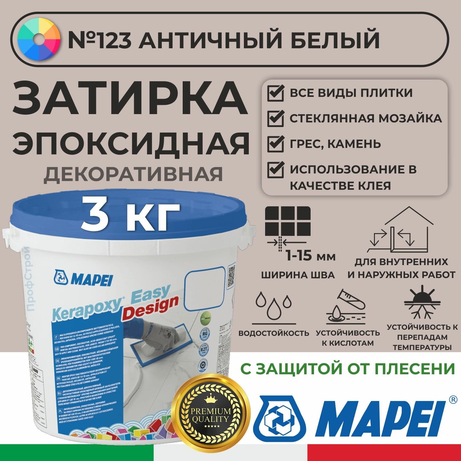 Купить Эпоксидная затирка Kerapoxy EASY Design MAPEI № 123 Античный белый, 3 кг