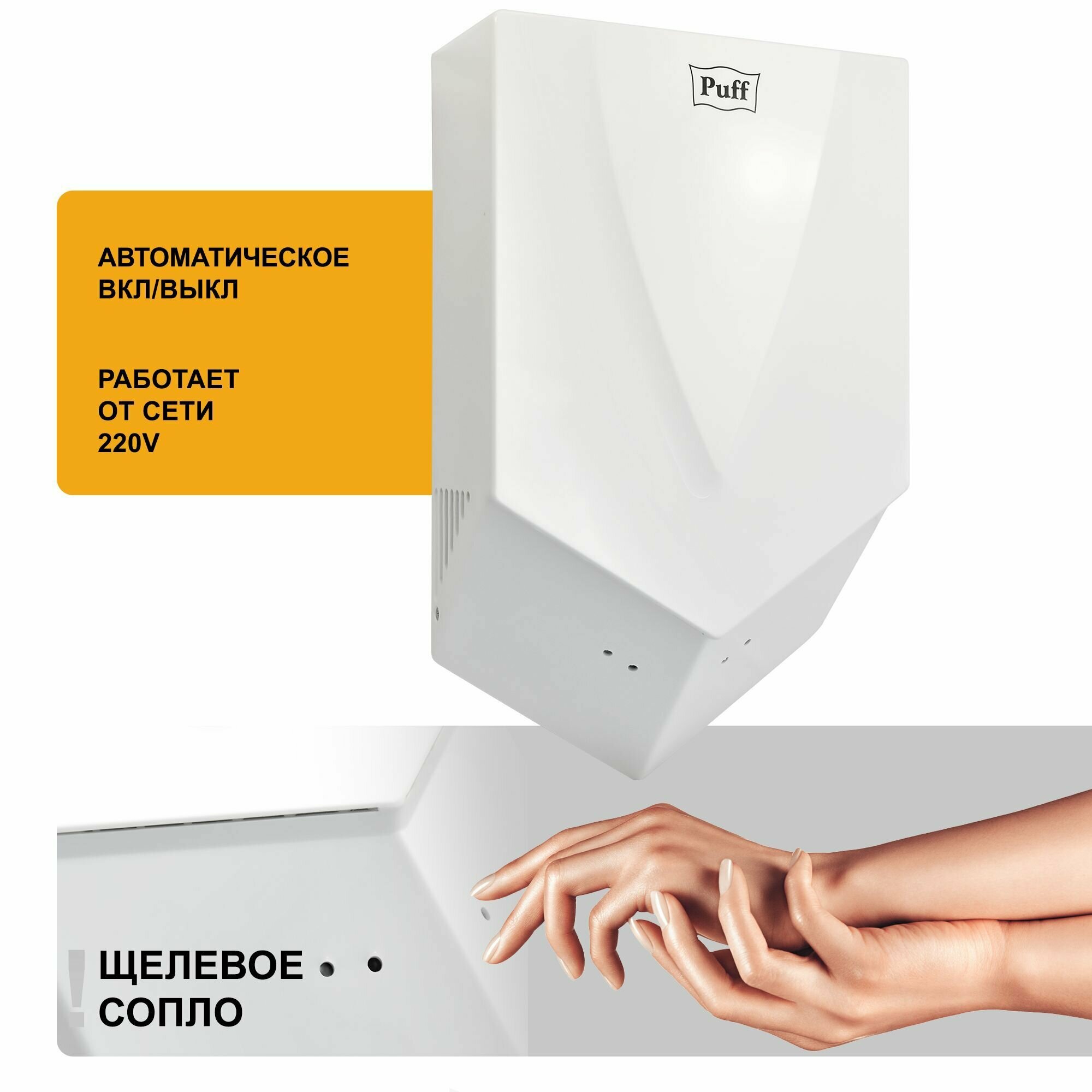 Puff Электросушитель для рук Puff 8802, высокоскоростной, белый, 1,2 кВт
