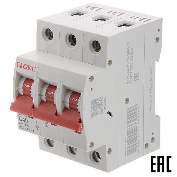 Выключатель автоматический модульный YON 40А 3П трехполюсный C 6кА MD63-3C40-6 DKC