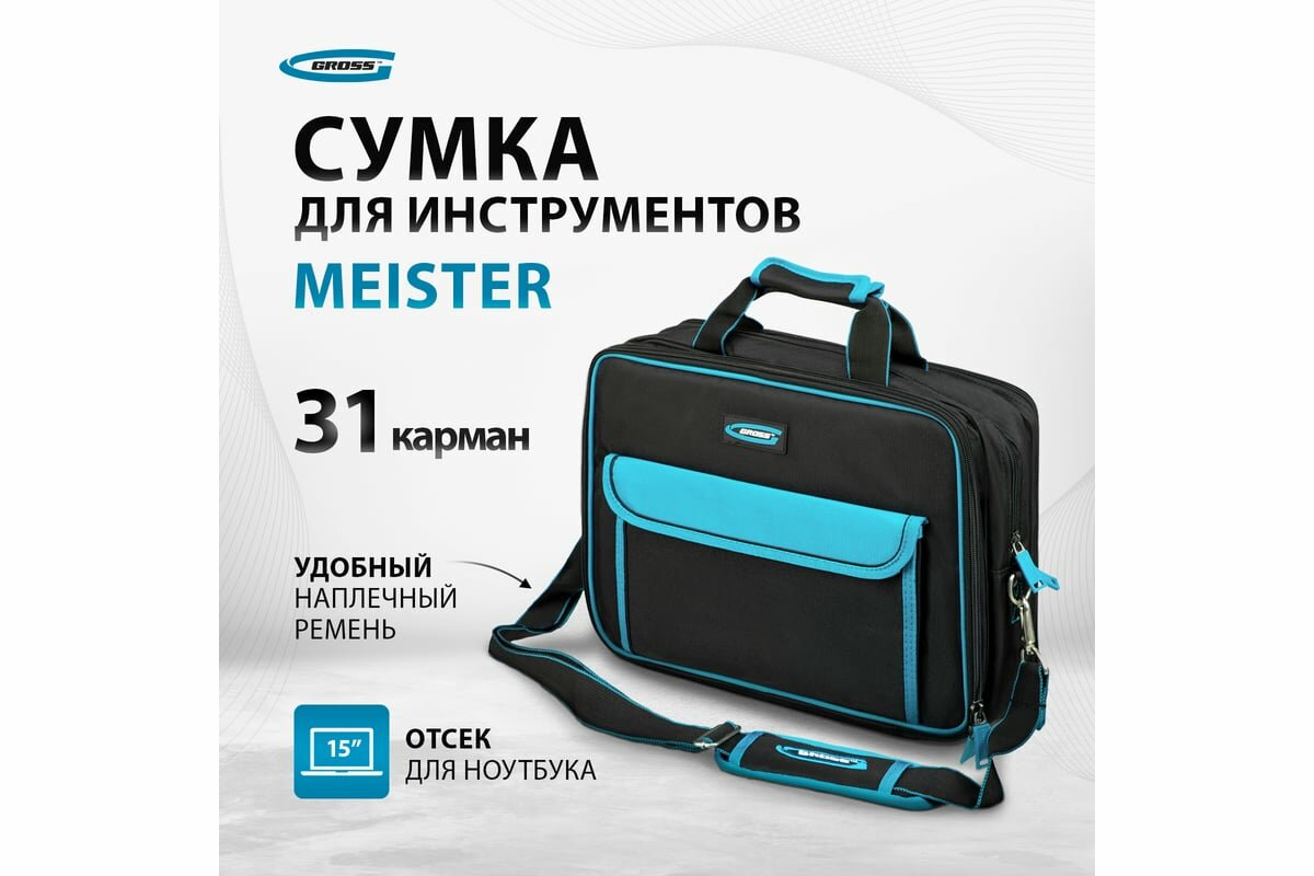 9 прочее сумка для инструмента meister, 31 карман, отсек для ноутбука, наплечный ремень,400х170х300мм gross gross арт. 90271 - Gross арт. bee23d13f375411e21d5