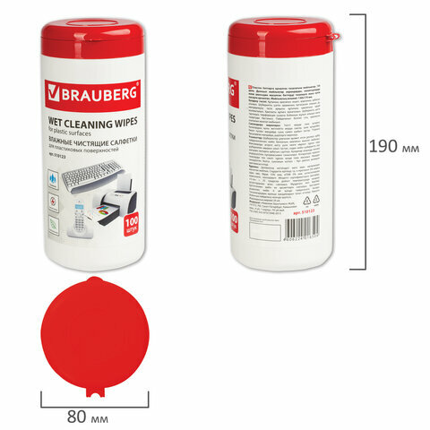 Салфетки для пластиковых поверхностей BRAUBERG, комплект 12 шт., 13х17 см, туба 100 шт., влажные, 510123 интересное: