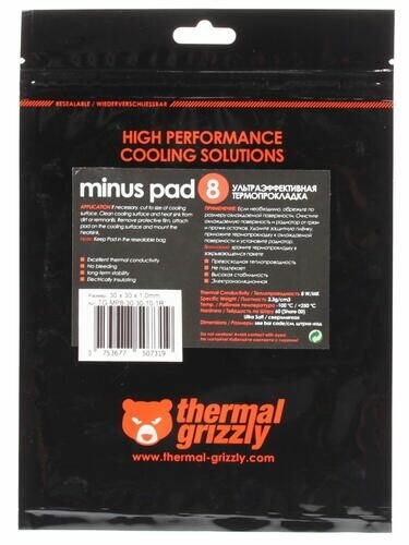 Термопрокладка Thermal Grizzly Minus Pad 8 30x30x1мм (TG-MP8-30-30-10-1R)