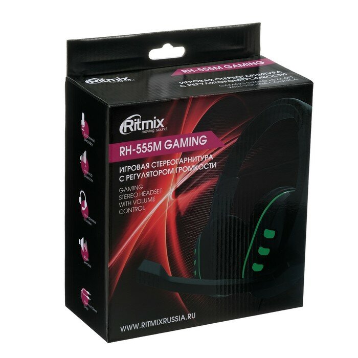Купить RITMIX Наушники Ritmix RH-555M Gaming, игровые, полноразмерные, микрофон, 3.5 мм, 1.8 м, черные