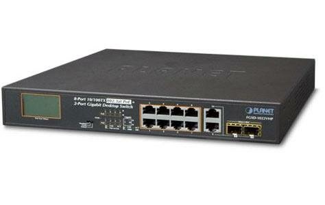 8-Port 10/100TX 802.3at PoE + 2-Port Gigabit TP/SFP combo Desktop Switch with LCD PoE Monitor (120W) интересное: