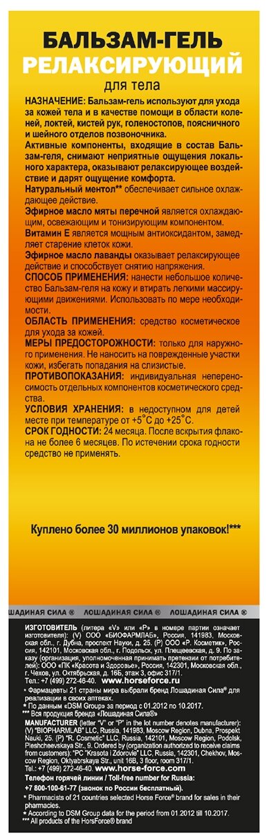 Лошадиная сила, бальзам-гель релаксирующий для тела, 500 мл