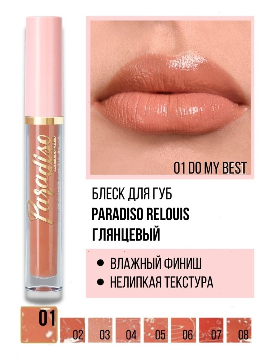 Блеск для губ RELOUIS PARADISO, тон 01 do my best, с влажным финишем