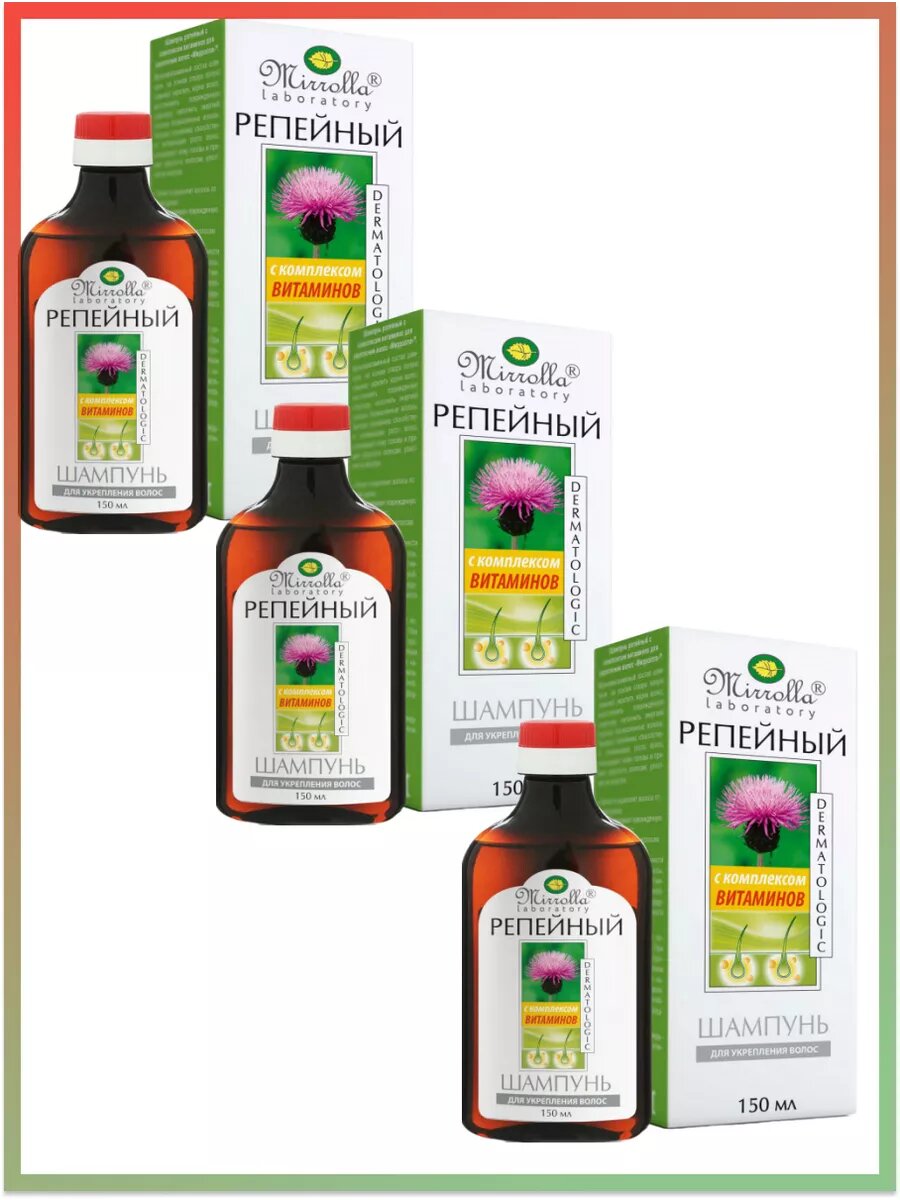 Шампунь репейный Mirrolla, комплекс витаминов для укрепления волос, 150 мл./В упаковке шт: 1