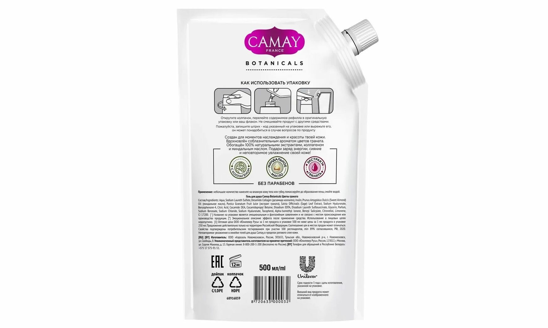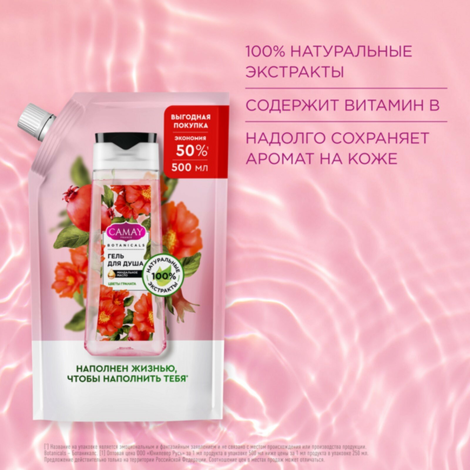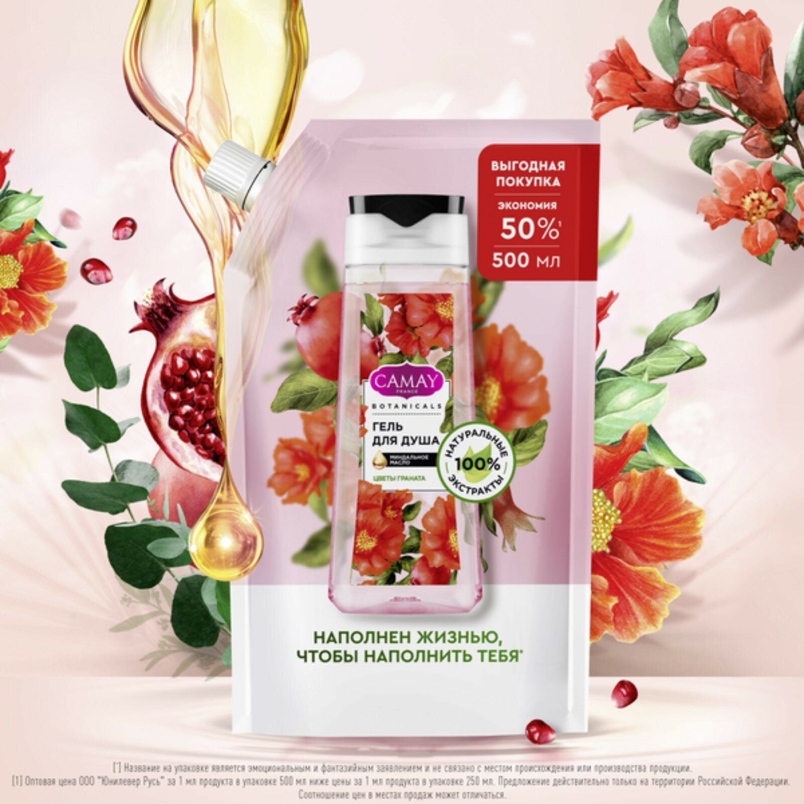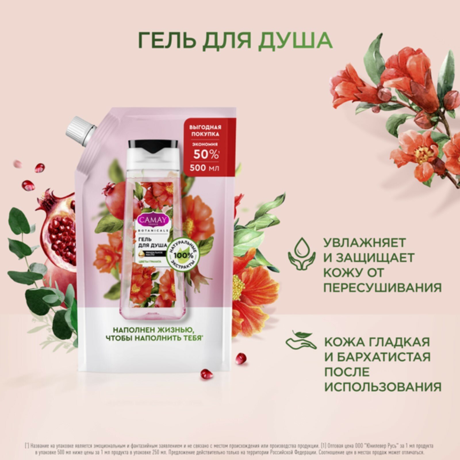 Купить CAMAY BOTANICALS цветы граната гель для душа с коллагеном миндальным маслом на 100% натуральной основе 500 мл