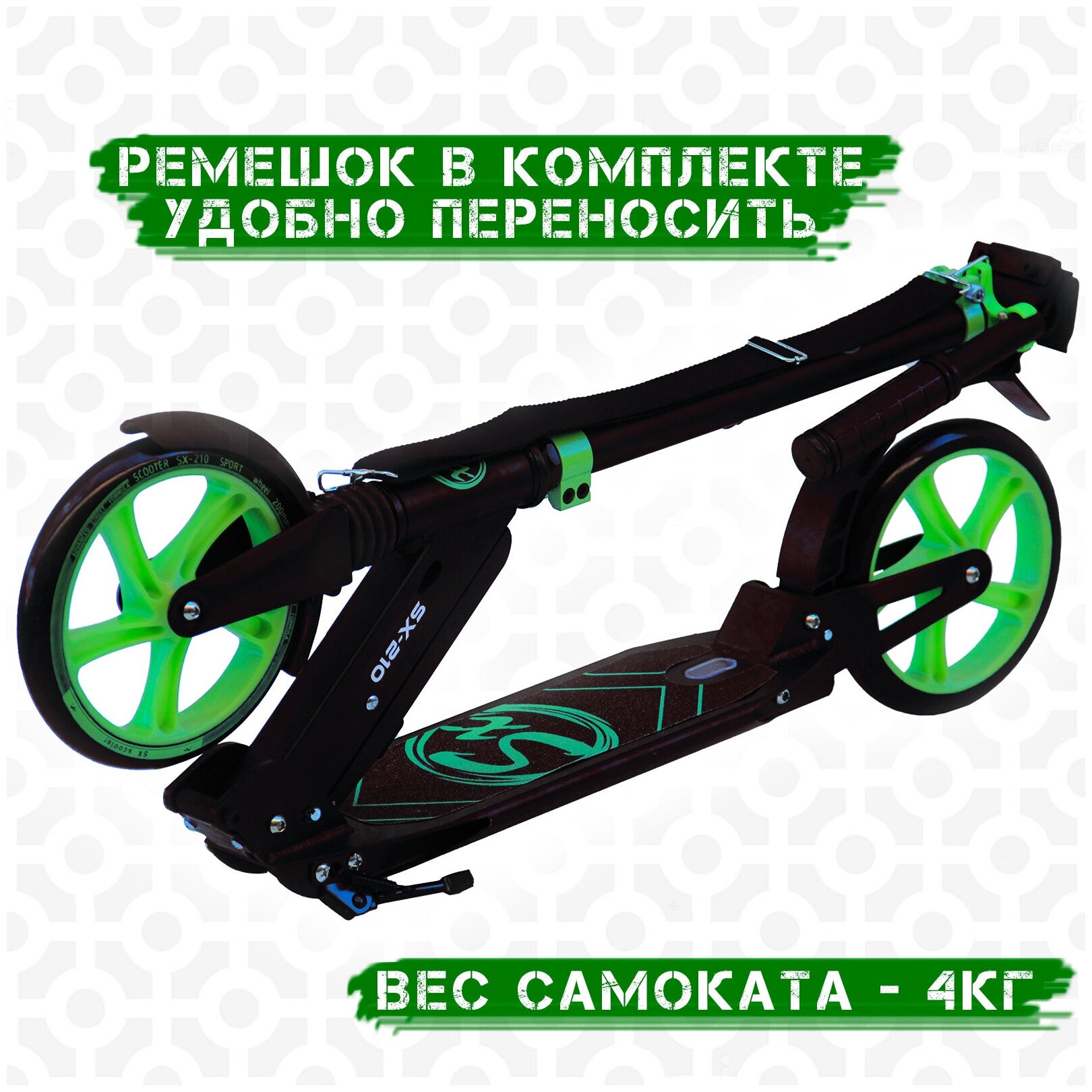 Купить Самокат двухколесный городской, складной, с амортизатором, складной, 200 мм, зеленый