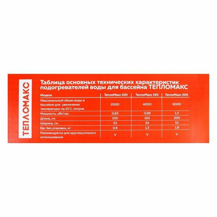 Электроподогреватель "ТеплоМакс", для воды в бассейне, 200х53 см./В упаковке шт: 1 интересное: